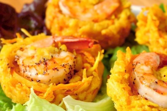 Tấm bánh tôm vàng ươm, thơm nức mũi với lớp vỏ bột chiên xù giòn tan bao bọc lấy những con tôm tươi roi rói, ngọt thịt. Vị bùi của khoai lang thái sợi hòa quyện cùng bát nước chấm chua ngọt, thêm chút dưa góp giòn sần sật và rau sống thanh mát, tạo nên một bản giao hưởng hương vị đánh thức mọi giác quan. Với những du khách vừa đặt vé máy bay từ Bangalore đi Hà Nội, đây chính là món quà chào đón nồng hậu nhất, mang đậm phong vị của đất Kinh Kỳ mà khó nơi nào có được.