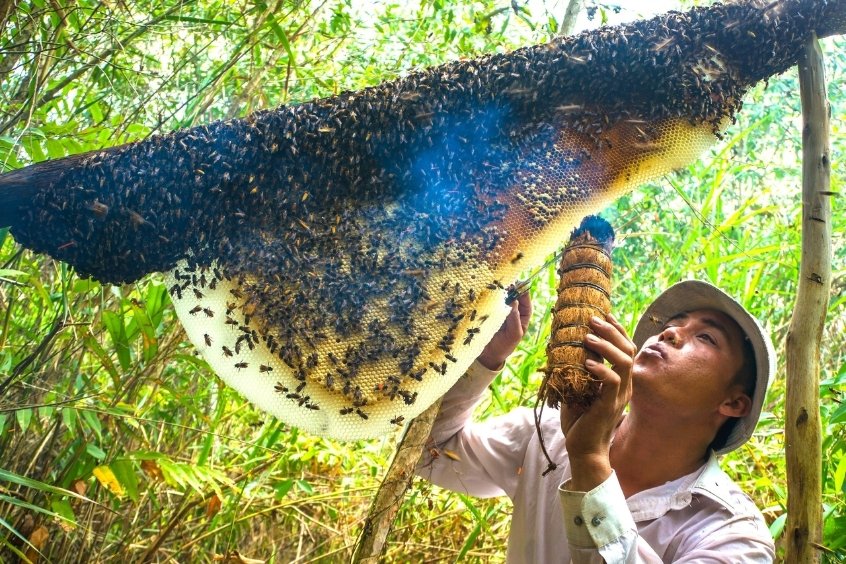 Đó là mùi thơm nồng nàn của mật ong rừng tràm khi hoa vào độ nở rộ nhất dưới cái nắng vàng hanh. Không khí lúc này khô ráo, thoang thoảng vị mặn đặc trưng của muối biển bay theo gió vào đất liền.