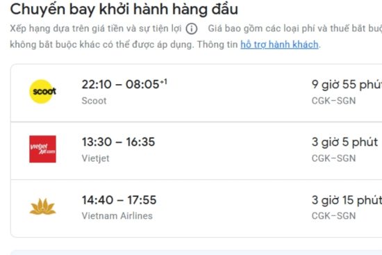 Giá vé khung giờ này thường thấp hơn ban ngày. Bạn có thể ngủ một giấc là về đến Việt Nam. Việc chọn vé máy bay từ Jakarta đi TP. Hồ Chí Minh cần linh hoạt. Bạn nên tránh bay vào các ngày lễ lớn của hai nước. Thứ ba và thứ tư thường là thời điểm vàng giá tốt. Các hãng bay hay tung khuyến mãi vào giữa tuần. Hãy chú ý các chuyến bay của các hãng giá rẻ. Họ thường có lịch trình khá dày đặc cho bạn chọn. Tuy nhiên hãy lưu ý thời gian nối chuyến nếu có. Tránh chọn các chuyến có thời gian chờ quá ngắn.